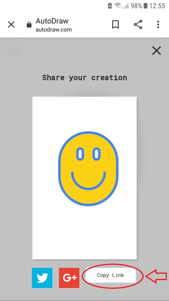 Στο τέλος, μπορείτε είτε να αποθηκεύσετε την κάρτα σας στον υπολογιστή ή οποιαδήποτε άλλη συσκευή χρησιμοποιείτε ή να την μοιραστείτε αντιγράφοντας τον υπερσύνδεσμό της (link) σύμφωνα με τις από την επιλογή Share>copy Link του μενού που υπάρχει στα αριστερά της οθόνης ζωγραφικές.